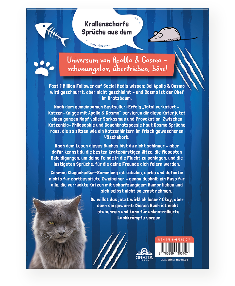 Zwischen Katzenklo-Philosophie und Couchkratzpoesie serviert Cosmo dir alles, um den Alltag mit einem schiefen Grinsen zu überleben: